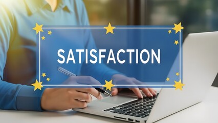 Customer satisfaction concept with person using laptop