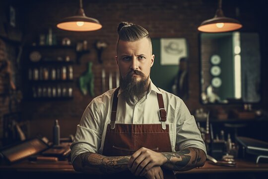 Cool barber portrait strong. Generate Ai