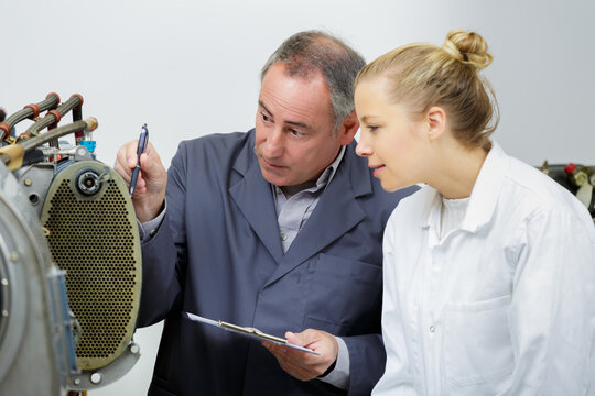 Engineers and technicians are solving problems caused by machines in industrial plants..