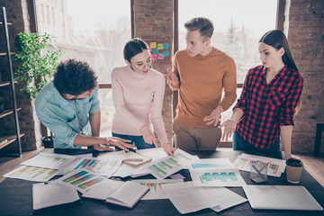 Young african american female worker working on company marketing report and analyzing statistic research at office workplace, start up on new company concept.