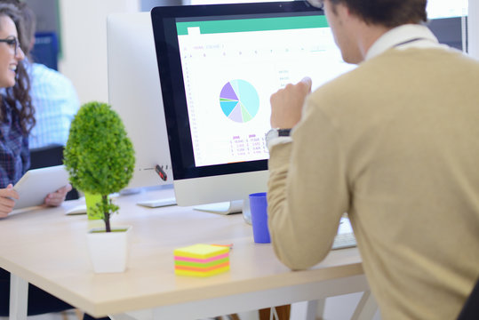 Rear View Of A Businessman in startup office Analyzing Graph On Computer