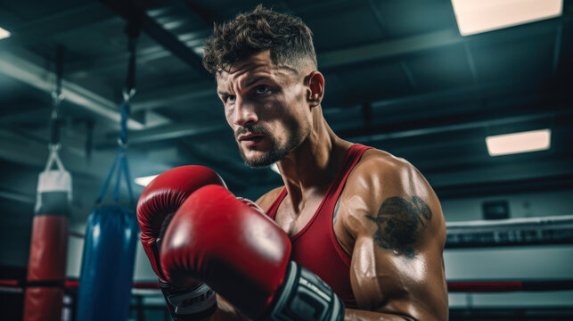 Young Man Practicing Boxing Indoors With Focused Technique Images