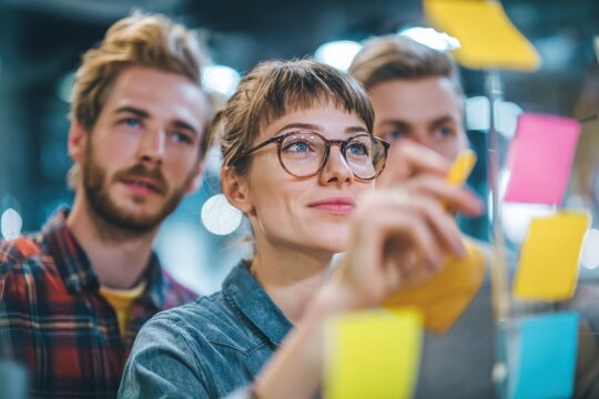 Young Professional Collaborating With Sticky Notes In Modern Office Images