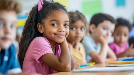 Diverse group of young children engaged in collaborative classroom learning