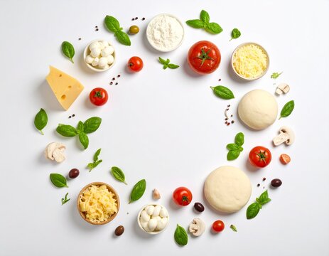 Ingredientes crudos para pizza ordenados en círculo