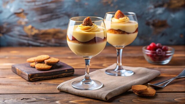 Creamy Zabaione Dessert in Top View. Generative AI