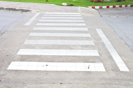 Aerial. Two pedestrians walk on a pedestrian crossing.