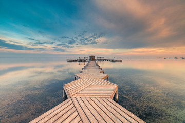 Sunset in the footbridge in Mar menor. Long exposure shot