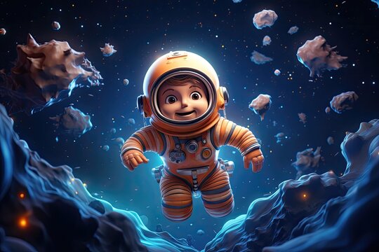 Astronaut in Space: A lone astronaut floats weightlessly in the vacuum of space. with spacesuit and helmet exploring the cosmos.