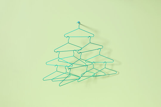 Reusable eco-friendly bags hanging on wooden rack with copy space