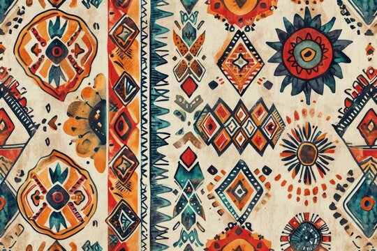 Ethnic tribal watercolor pattern for design projects.
