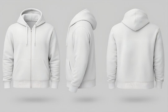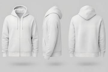 White zip-up hoodie mockup. Zipper hoodie. Front and back hoodie template
