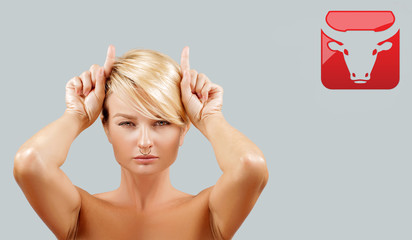 Taurus symbol in spinning zodiac wheel with glowing stars