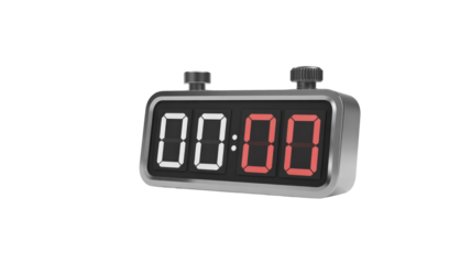 Digital kitchen timer showing zero on transparent background