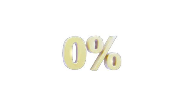 Golden zero percent symbol isolated on transparent background