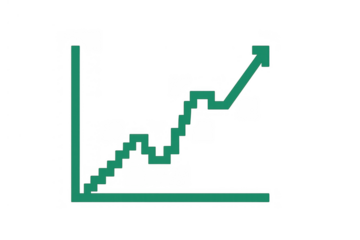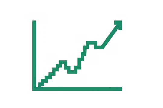Pixel art financial chart showing market growth and success with an upward trend arrow on transparent background