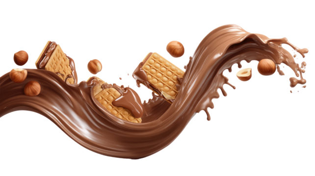 M A 6 Ultra-Realistic Chocolate Hazelnut Cream Splash Thick Glossy on Transparent Background
