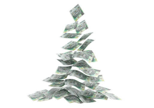 Flying polish 100 zloty banknotes as pyramid isolated on white background. Banner with money from Poland for pyramid christmas.