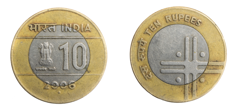 Indian ten rupees coin. on white background. Rupees, Indian Currency coins money, business real estate concept.