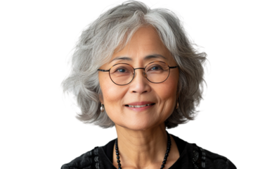 a U50 year old Chinese lady that is smiling but Young, stylish, rich. in a T-shirt. half length photo at about 30 degrees. head slightly raised, smile at the corner of his mouth isolated PNG