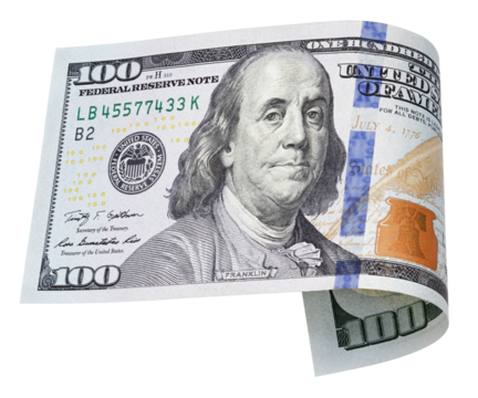 One hundred dollar bill isolated on transparent background
