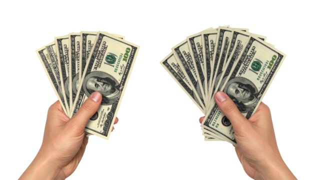 Hands Holding Fanned Out US Dollar Bills Bundle: Variations Isolated on Transparent Background