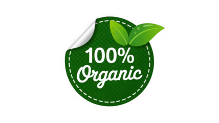 Green 100 percent organic label sticker with leaves isolated design