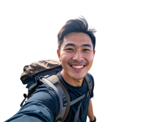 Happy Man Taking Selfie While Hiking in Mountains PNG