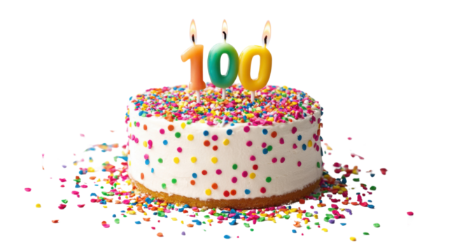 Celebrating 100th Anniversary with Party Hat and Confetti Explosion