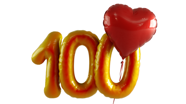 Numbers one hundred Balloon with red heart Isolated on transparent background