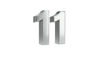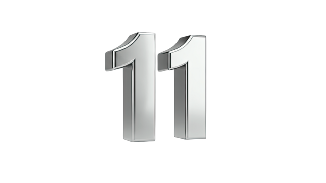 Bold golden numbers 11 percent symbol with metallic sheen isolated on a transparent background eleven