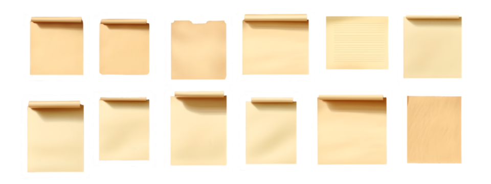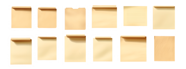 Vintage Paper Textures: An eclectic collection of 12 vintage paper textures. Each sheet exhibits unique folds, creases, and faded edges, adding authentic character to your design projects.