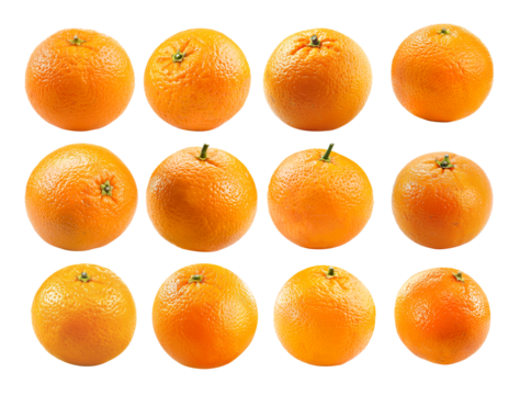 set of 12 oranges isolated on white background