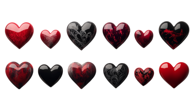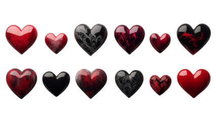 Valentine's Set of 12 Vintage Hearts in Dark Colours - Love Clipart without Background