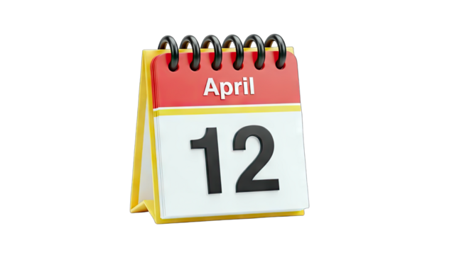 Close up of a spiral bound desk calendar showing the number twelve on a white page isolated on transparent background