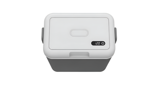 Realistic 3D Rendering of a White Sterilizer Box with Digital Display, Showing 120 Seconds Time, on Transparent Background and Minimalist Design, for Hygiene Purposes