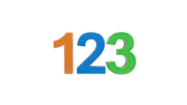 Colorful 3D Numbers 1, 2, 3 on White Background