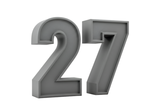 3D Rendered Gray Number 27 Isolated On Transparent Background