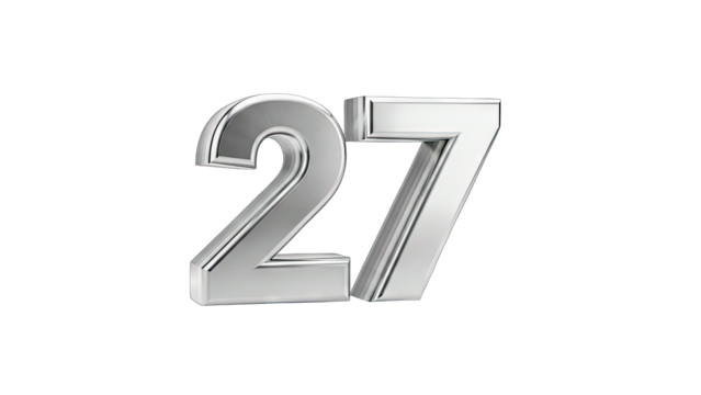 Silver Number 27 Isolated on White Background