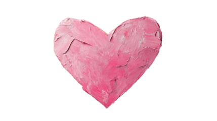 Red impasto heart painting celebrating love and romance on transparent background