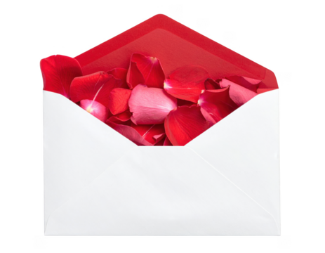 love envelope lying on white surface for valentines day, isolated on white and transparent