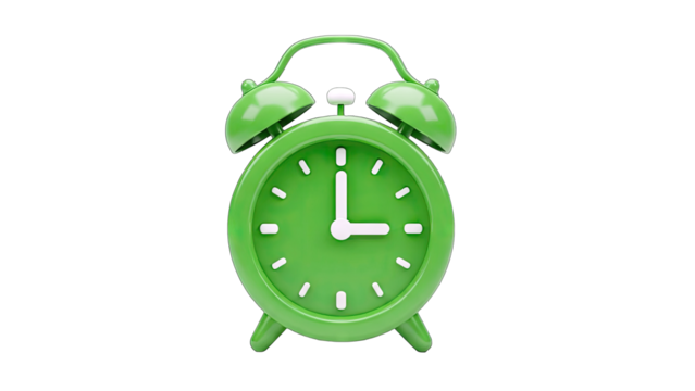 Green Alarm Clock Showing 2:15 on White Background