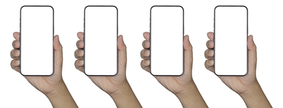 Smartphone mockup on hand with different postures isolated on a clear background including clipping path.
