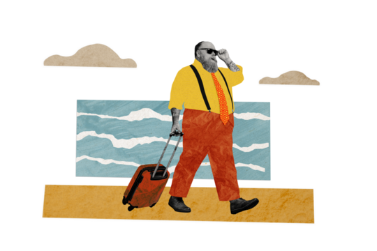 Composite artwork collage image picture of guy run suitcase mini world globe isolated on creative background