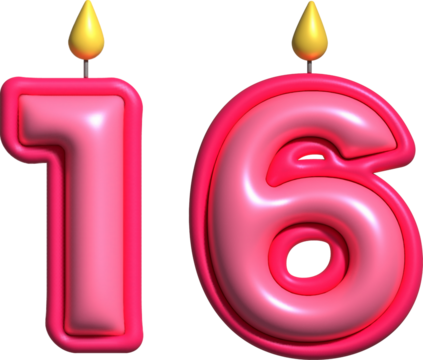 Ornate number 16 transparent illustration for celebrations and birthdays