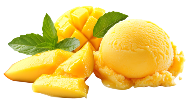 Professional Mango Ice Cream Isolated on White Background AR 169