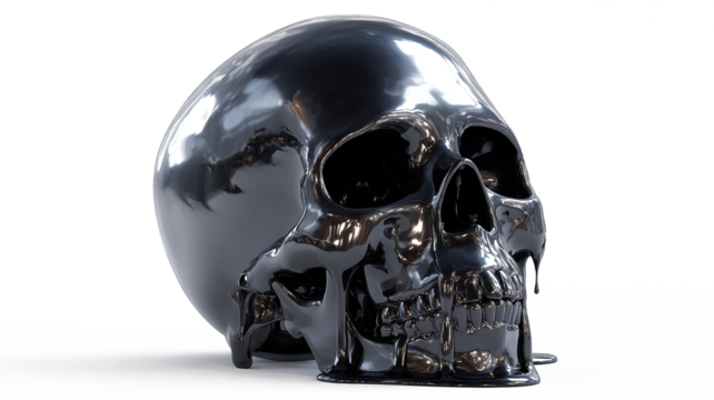 Half-melted black skull with liquid effect, isolated on white, realistic lighting, 169