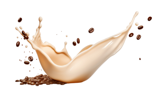 Milk splash with coffee beans isolated on transparent or white background, 16k --ar 3:2