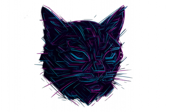 Vaporwave Style Abstract Cyberpunk Cat Head Print
