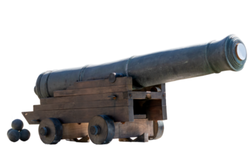 Photo of an old artillery cannon, the 32-pounder Blomefield, widely used in 16th century fortifications, isolated on a transparent background